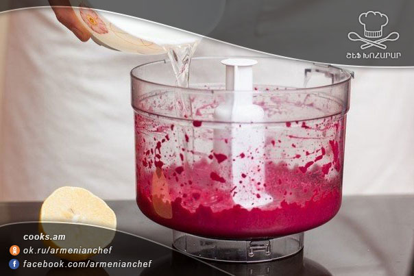 Բազուկը բլենդերի մեջ ենք դնում, ավելացնում ենք մայոնեզ, մի քիչ աղ ենք անում և բլենդերի մեջ մանրացնում, որ խյուս դառնա։ Լցնում ենք կիտրոնի հյութն և բազուկը համտեսում։ Այն պետք է թթվաշա-քաղցր հաճելի համ ունենա։ Ժելատինը տաքացնում ենք (բայց չենք եռացնում) և լցնում խյուսի մեջ։ Նորից լցնում ենք բլենդերի մեջ, որ համասեռ զանգված ստանանք։