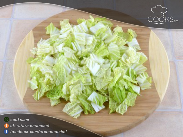 - Կաղամբը քառակուսաձև կտրատում ենք։