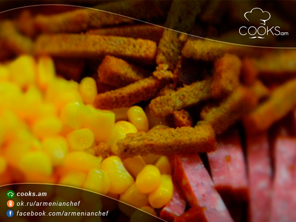 Նման աղցան եգիպտացորենով և չորահացով կարելի է պատրաստել հատկապես այն ժամանակ, երբ քիչ ժամանակ ունեք 🙂