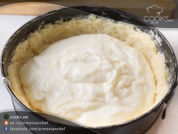 - Խմորի վրա լցնում ենք եփովի կրեմը։