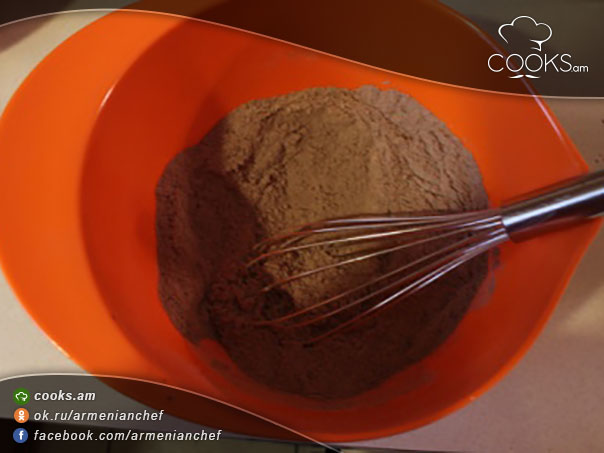 - Ալյուրը, կակաոն ու սոդան խառնում ենք: