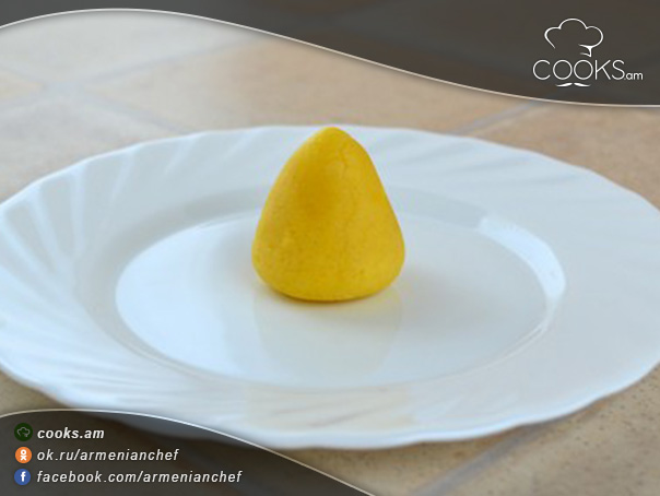 - Դեղնուցները լավ մանրացնում ու վերածում ենք փշուրանման զանգվածի։