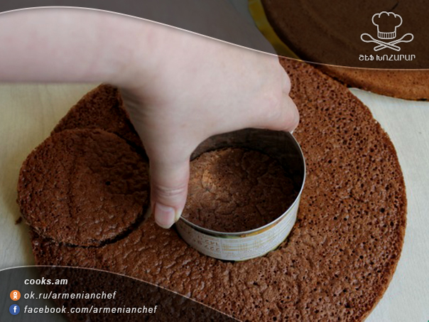 - Վերցնում ենք 2 բիսկվիթները և բաժակով կամ մետաղական ձևամանով շրջաններ կտրում: