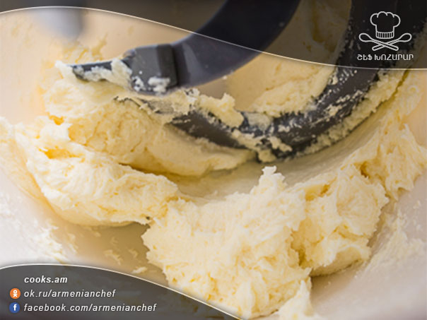 Կարագը շաքարավազի հետ հարում ենք մինչև կրեմանման զանգված ստանանք։