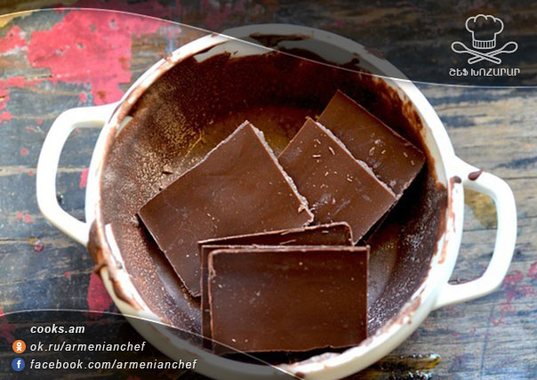 - Շոկոլադը գոլորշու վրա հալեցնում ենք։