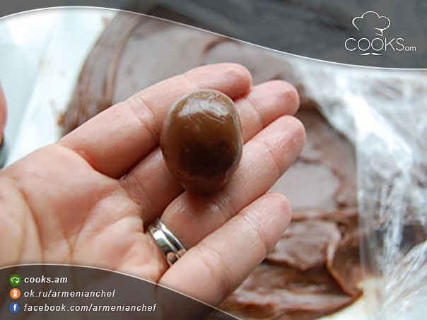 - Թաթախում ենք սկզբում շաքարի փոշու, այնուհետև՝ կակաոյի մեջ: