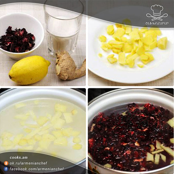 Եփում ենք մինչև եռալն ու շաքարավազի հալվելը, ապա հանում ենք կրակից և ավելացնում կարկադե թեյը: Փակում ենք կափարիչով և թողնում մնա այդպես 15-20 րոպե:
