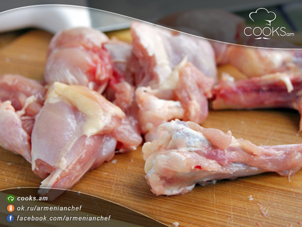 - Միսը ոսկորից առանձնացնում ենք և մանր կտրատում: