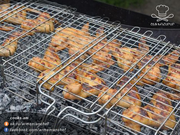 - Եթե թևիկները բարբեքյուի ցանցի մեջ են, պարբերաբար շրջում ենք, որպեսզի դրանք հավասարապես խորովվեն։ Նույնը անում ենք նաև շամփուրների դեպքում։