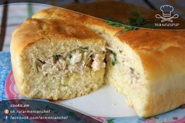 Այսպիսի պիրոգը շատ համեղ կստացվի, եթե հավի հետ նաև սունկ խառնենք։ Հավն ու սունկը կարող ենք խաշելուց հետո նաև տապակել նոր դնել խմորի մեջ 🙂