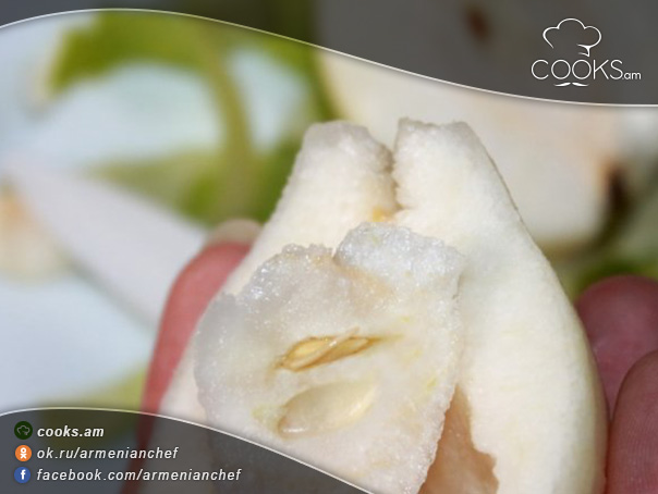 - Տանձը կեղևահանում ու կորիզահանում ենք: