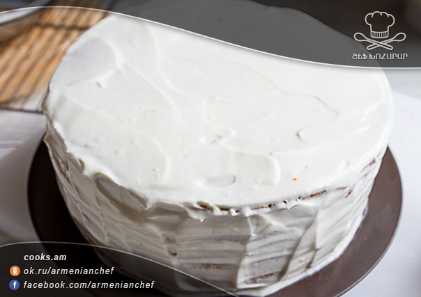 Նշված բաղադրիչներով 21 սմ տրամագծով և մոտ 2 կգ քաշով թխվածք է ստացվում։ Եթե ձեռքի տակ սերուցք չունենք, կարող ենք թթվասերն ու շաքարավազը խառնել իրար, դրանով իսկ փոխարինելով սերուցքը 🙂