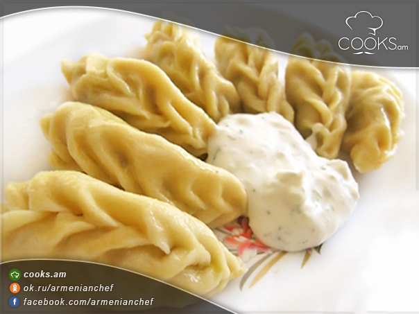 - Կուրզեն լցնում ենք եռացրած աղաջրի մեջ և եփում: Այդ ընթացքում մանր կտրատված մաղադանոսը, թթվասերն ու ճզմած սխտորը խառնում ենք և սոուս պատրաստում: