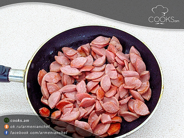 - Նրբերշիկները տապակում ենք բուսայուղով լի տապակի մեջ։