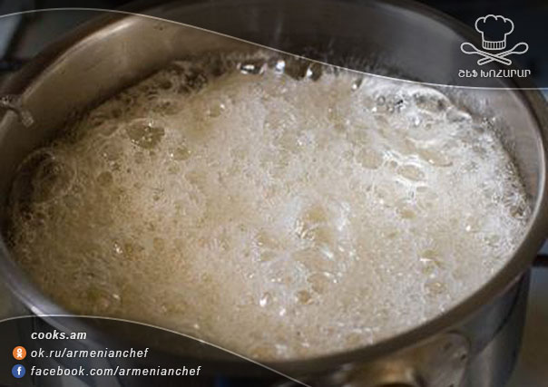 - Ագար-ագարը ջրի մեջ թրջում ենք և մի կողմ դնում։