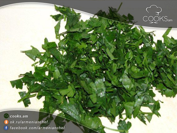 - Կանաչին լվանում ու մանր կտրատում ենք։