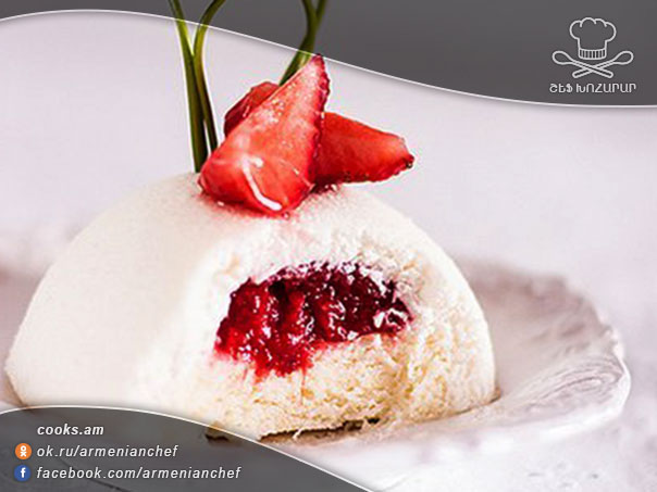 Սառելուց հետո ելակի սոուսը լցնում ենք ձևամանների մեջ: