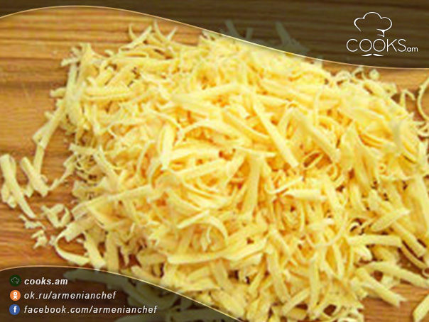 - Պանիրը քերիչով անցկացնում ենք։