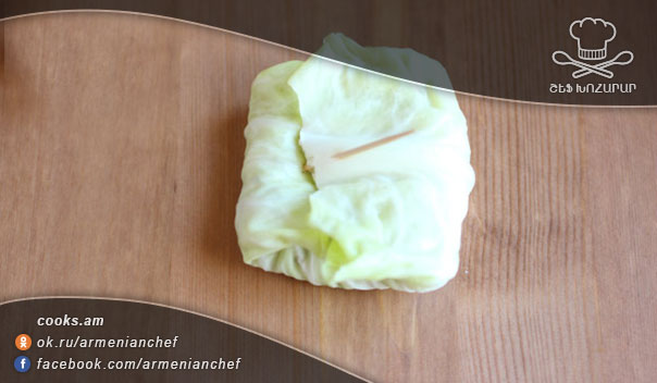 ամրացնում ենք ծայրը ատամի չոփիկով, որպեսզի տոլման չբացվի: