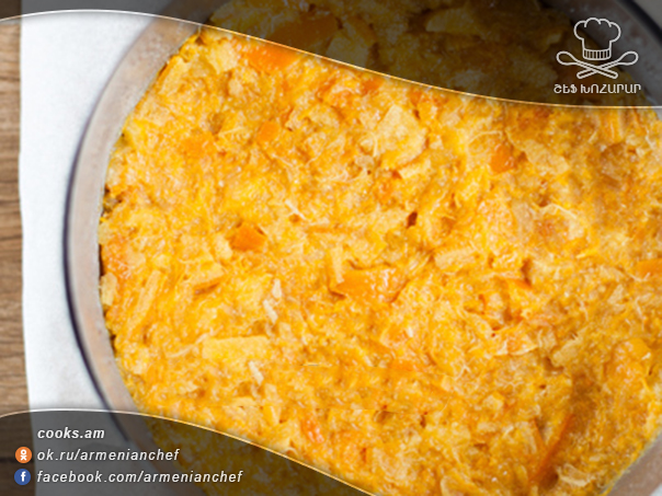 - Պատրաստում ենք շաքարած նարինջները: Նարինջները կտրատում ենք, յուղաթղթապատ տապակի մեջ ցանում շաքարավազի կեսն, այնուհետև դնում նարինջները` վրան շաքարավազի մյուս կեսն ավելացնելով: Թխում ենք 40 րոպե 150-160 աստիճանում: