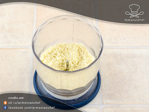 - Նուշը մաղում ենք, եթե մեծ կտորներ կան մանրացնում ենք: