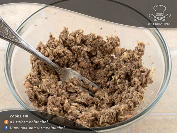 - Ձուկը պատառաքաղով լավ տրորում ենք։